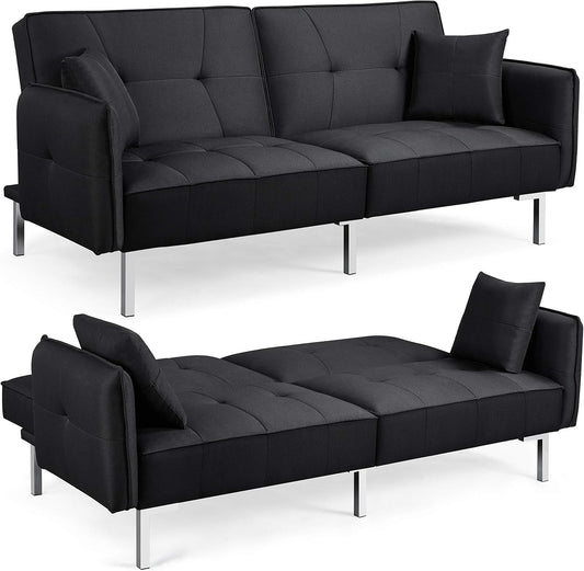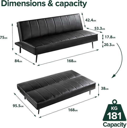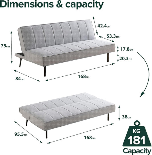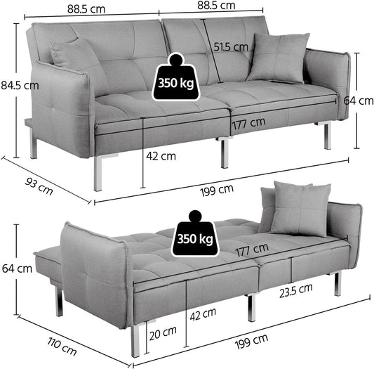 Sofa Bed 198CM Modern Fabric 3 Seat Click Clack Sofa Bed Couch Settee with Arms and 2 Soft Cushions