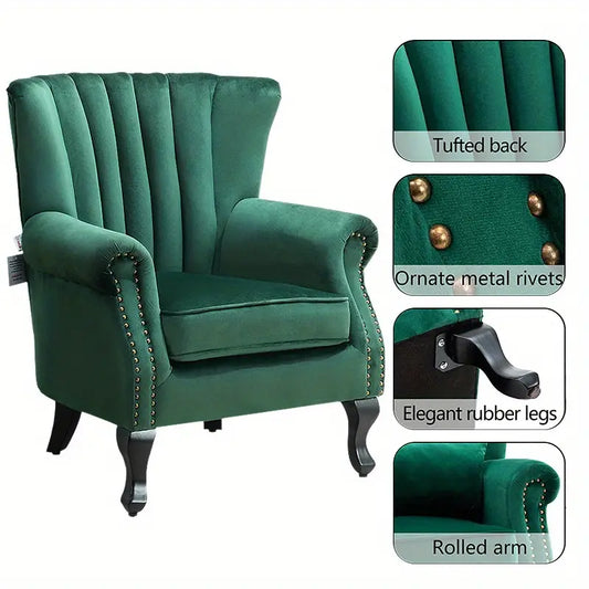 Chesterfield Grey Retro Accent Chair, Wingback Armchair with Wood Frame