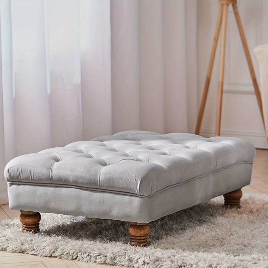 Chesterfield Deep Button Grey Coffee Table Stool Bench Velvet Padded Pouffe Footstool 60*90cm