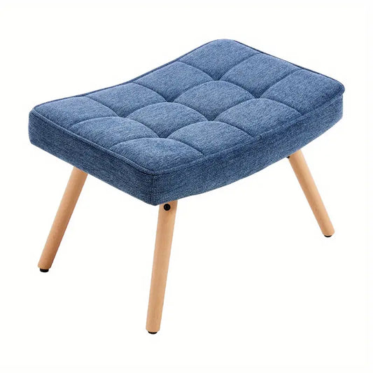 Chesterfield Upholstered Fabric Armchair with Footstool Sofa Fireside Chair Blue