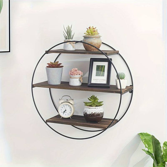 Circle Round Wall Decorative Floating Shelves Rustic Hanging Storage Shelf Metal Bracket