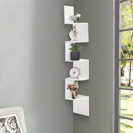 Corner Shelf, 5 tier Floating Wall Shelf With Zigzag Design, Bookshelf for Offices Bedrooms