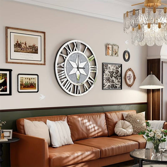 60cm Round Sparkle Crushed Diamond Wall Clock Silver Glass Mirror Wall Clock Quartz