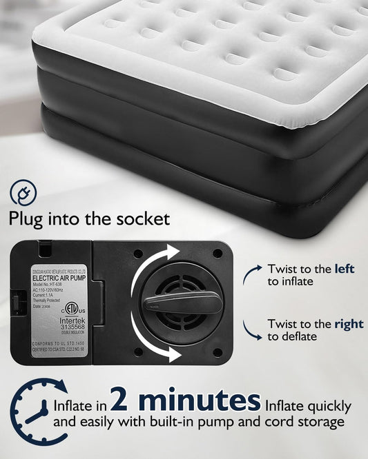 Air Bed Double 18cm Inflatable with Headboard & Electric Pump Home Camping Travel