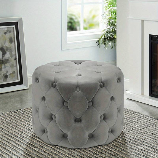Chesterfield Coffee Table Buttoned Ottoman Footstool Velvet Stool (Grey, 60x 60 x 38cm)