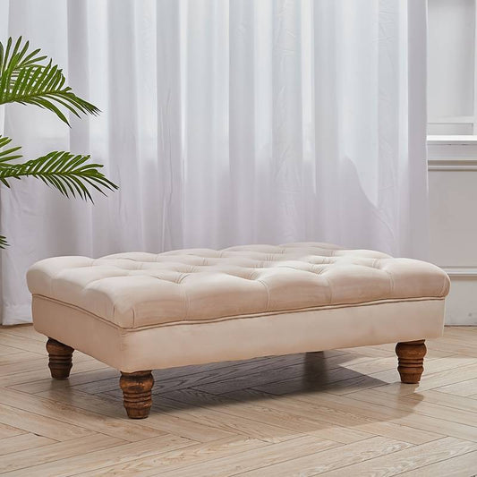 Chesterfield Deep Button Beige Coffee Table Stool Bench Velvet Padded Pouffe Footstool 60*90cm