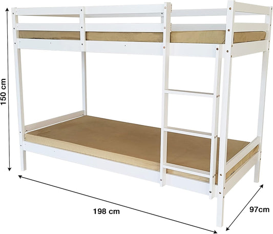 Bunk Bed Frame Wooden Bunk Bed in White, 3FT, HEAVY DUTY in (White)