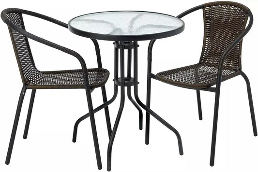 Garden Furniture Rattan 3 Piece Set Outdoor Patio Chairs And Steel Table For BBQ’s