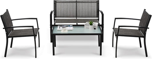 Garden Furniture Set of 4, 4 Seater Textilene Outdoor Patio Furniture Sets for Garden