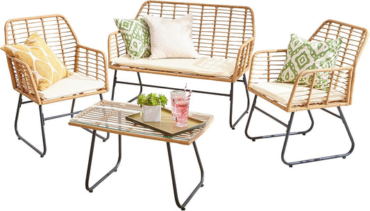 Garden Furniture Set, Sofa Rattan 4 piece Patio Rattan furniture sofa Weaving Wicker