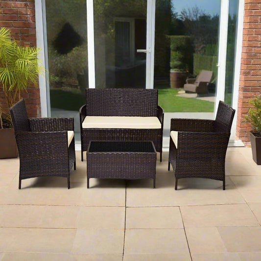 Garden Furniture Sofa Brown Rattan Set Patio Conservatory Indoor Outdoor 4 Seater Piece Sofa
