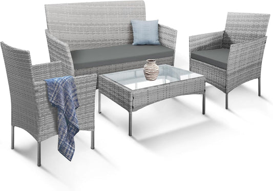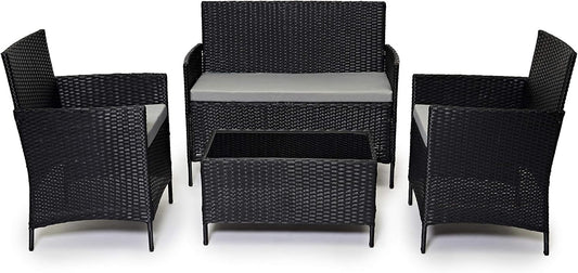 Garden Furniture Sofa Black Rattan Set Patio Conservatory Balcony Indoor Outdoor 4 Seater