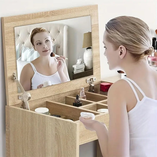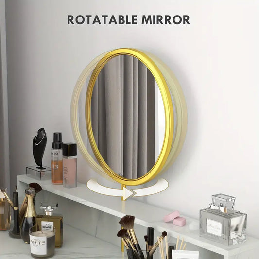 Dressing Dressing Table with Round Mirror, Vanity Makeup Desk with Open Storage