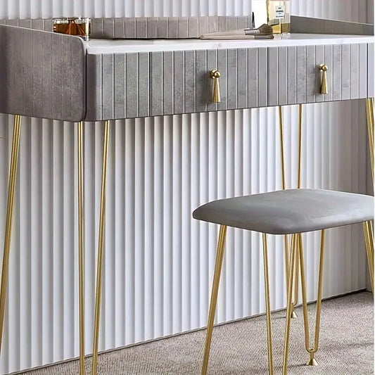 Dressing Table Upholstered Quilted Velvet With 2 Drawers Stool Seat Vanity Grey