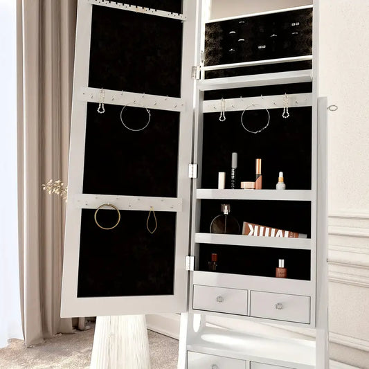 Dressing Table Storage Cabinet With Full Length Mirror, LED Lights - Free Standing