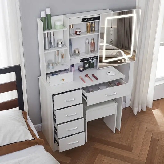 Dressing Table Makeup Desk With Lighted Mirror Stool Large Drawers Vanity Table