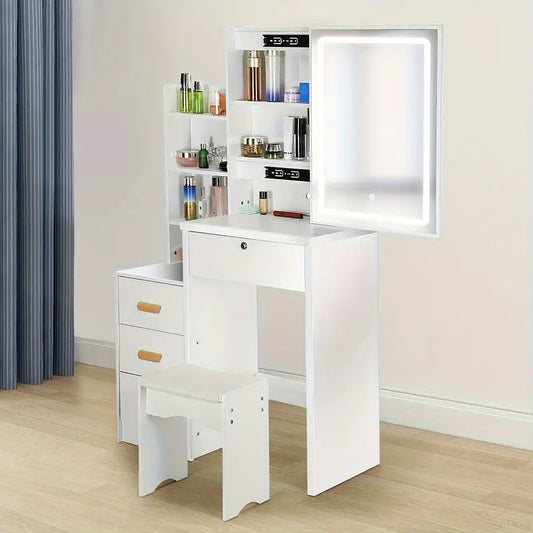 Dressing Table with LED Mirror and Stool Elegant Makeup Desk Featuring