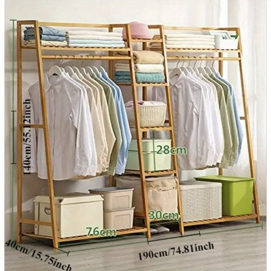 Wardrobe Bamboo Wood Open Clothes Rail Rack Hanging Garment Organize