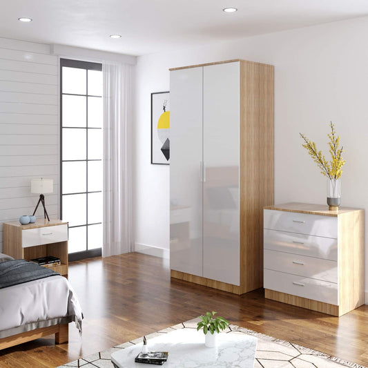 Wardrobe elegant 3 Piece Bedroom Furniture Sets High Gloss Soft Close ( WHITE & OAK )