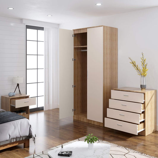 Wardrobe elegant 3 Piece Bedroom Furniture Sets High Gloss Soft Close ( CREAM & OAK )
