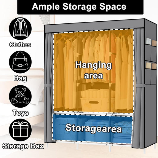 Wardrobe, Portable wardrobe Pop up wardrobe, Versatile Fabric Wardrobe ( GREY )