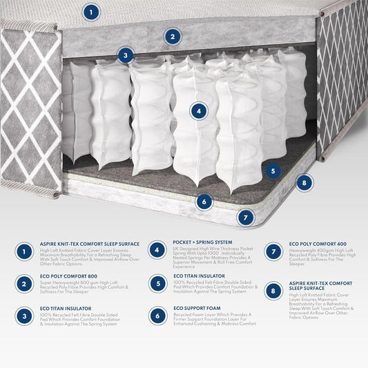 Pocket 1000 Medium Firm 27cm Adults and kids Hybrid Breathable Mattress