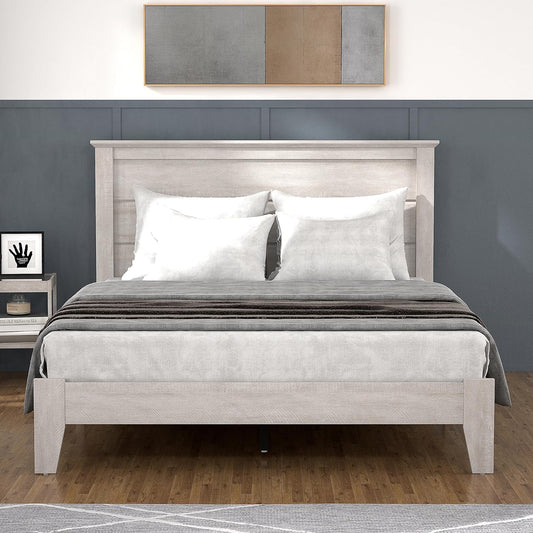 Wooden Double Bed - Dusty Grey Oak Stylish Wooden Bedframe with Headboard