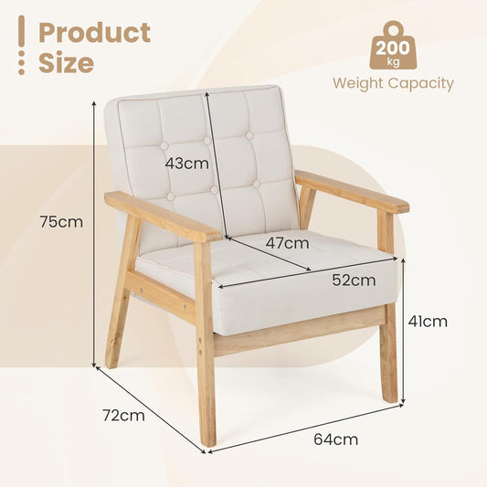 Sofa Accent Armchair, Button Tufted Modern Single Sofa Chair with Rubber Wood Armrests