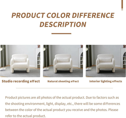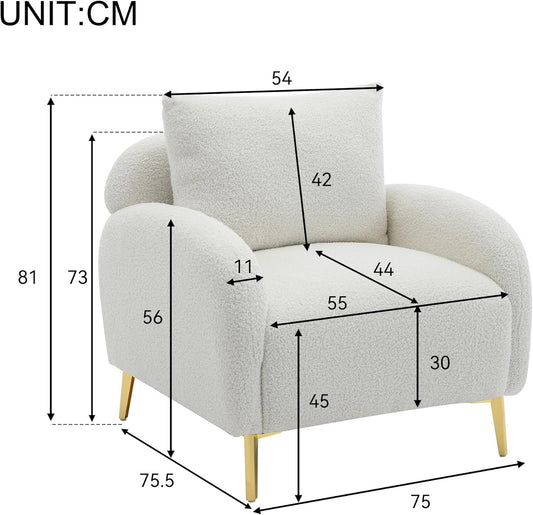 Single Upholstered Sherpa Armchair, Tub Chair with Back Pillow, Accent Chair, Sofa Chair, White Single Sofa