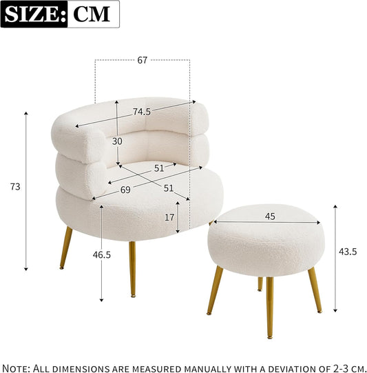 Sofa Accent Chair, Faux Fur Cozy Chair for Bedroom/X-Large (White Fur, Gold Metal)