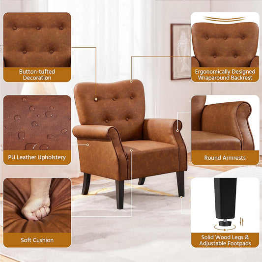 Sofa Modern Tub Chair, Mid-Century PU Leather Accent chair Sofa Chair