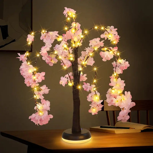 Lighted pink Cherry Blossom Tree Lamp, Tabletop Tree with 72 LED Lights 60cm Fairy Lights