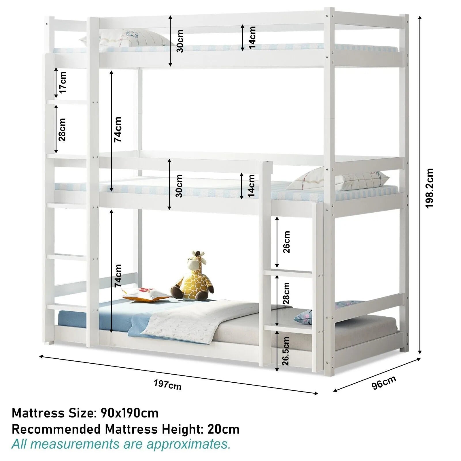 - Recommended Mattress Dimensions per bed : 190 L x 90 W cm