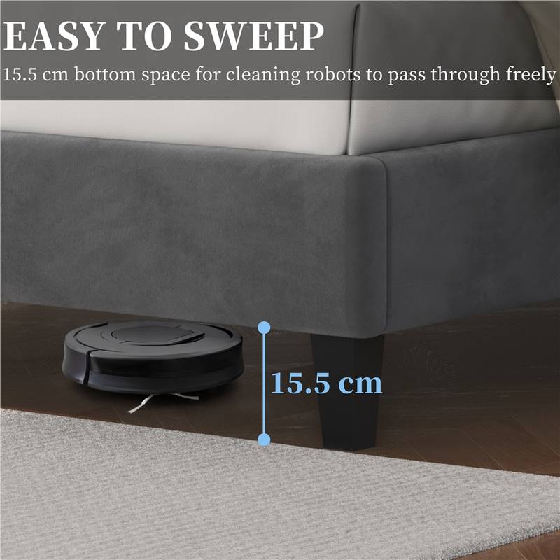 Chesterfield Upholstered Bed Frame Velvet (DARK GREY) Platform Bed with Height Adjustable Headboard With Wooden Slat Support