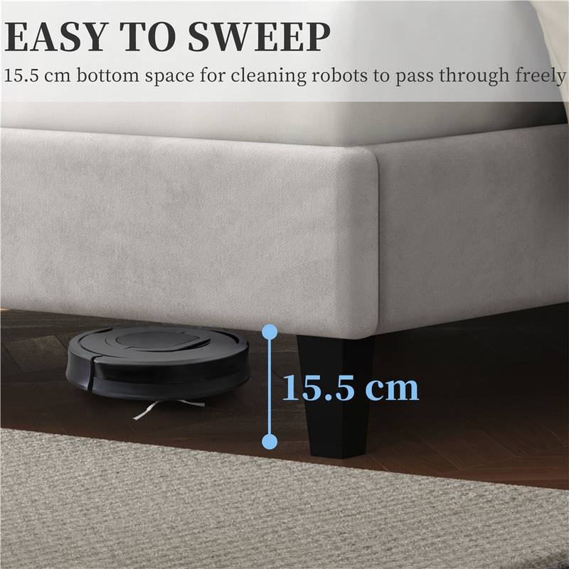 The button-tufted design adds a tailored touch that will blend well with most home decor. The bed frame features 10 wooden slats for increased support and strength.