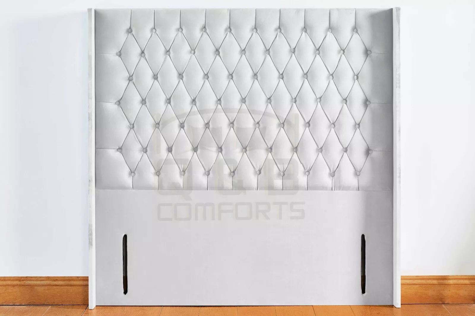 Headboard Winged Chesterfield Floor standing plush velvet fabric 54" PEBBLE