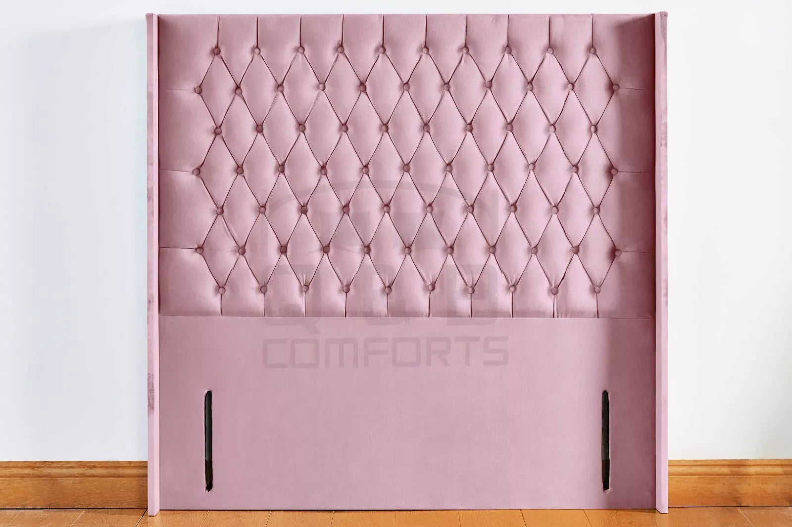 Headboard Winged Chesterfield Floor standing plush velvet fabric 54" / PINK