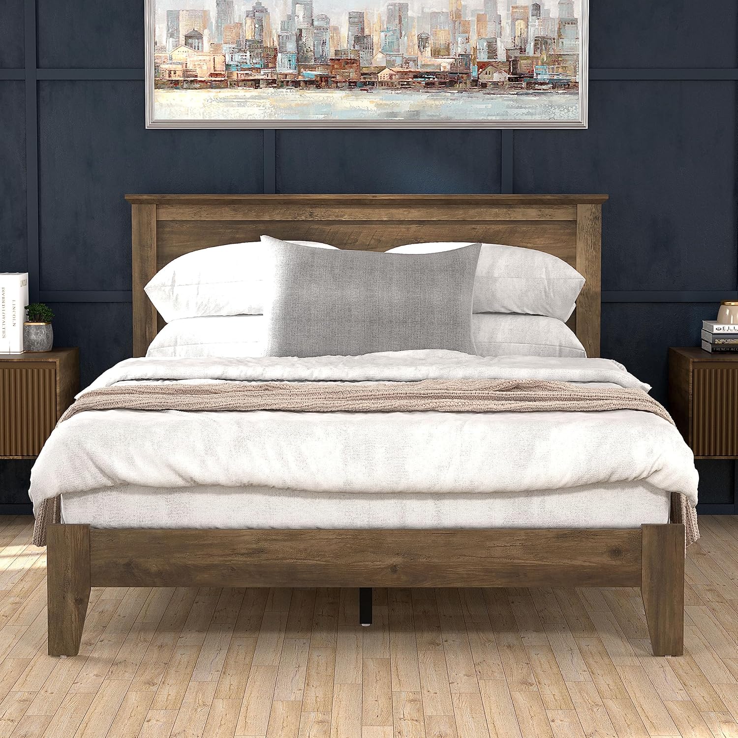 - 【Under-bed Storage Space】The bedframe double bed HOJINLINERO Double Bed Frame with Storage Wooden Headboard Shelf,Metal Platform Wooden Bed Frame Double Bed ,Easy Assembly,Mattress Base, Strong Metal Slat, Noise Free,Black + Rustic Brownfeatures 27cm of vertical storage space under the bed to meet your daily storage needs. You can put storage boxes, suitcases, etc. keeping your bedroom to have a clean appearance, and easily cleaned up by a sweeping robot.